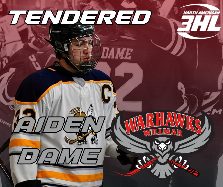 The Willmar WarHawks are delighted to announce that Aiden Dame has tendered with the team.